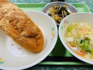 1月25日(火) 公開日 2022/01/25 更新日 2022/01/25 給食の献立 きょうのこんだて きな粉揚げパン、わかめとツナのサラダ、ウインナーポトフ、牛乳です。 全国学校給食週間です。 きょうは給食といえば揚げパン。 子ども達の大好きな定番メニューです。 iPhoneから送信 いいね(0)