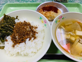 1月28日(金) 公開日 2022/01/28 更新日 2022/01/28 給食の献立 きょうのこんだて ご飯、手作りふりかけ、お魚バーグ、茎わかめの生姜炒め、けんちん汁、牛乳です。 全国学校給食週間最終日はユネスコ無形文化遺産にも登録された和食。一汁三菜の献立です。バランスよく食事を摂ってコロナを吹き飛ばしましょう。 iPhoneから送信 いいね(0)