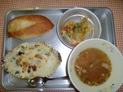 9月28日(水)の献立 公開日 2011/09/29 更新日 2011/09/29 給食の献立 <今日の給食> ソフトフランスパン、ポテトとホウレンソウのグラタン、オニオンスープ、おんやさいのセサミソース、ぎゅうにゅう いいね(0)