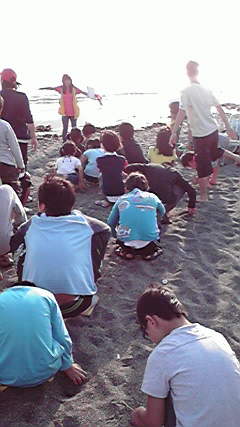 砂の造形の時間でしたが、穴を掘ったり、山を作ったり、海をただただ見つめていたり…さまざまな活動を楽しんでいました。