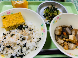 3月16日(水) 公開日 2022/03/16 更新日 2022/03/16 給食の献立 きょうのこんだて わかめと麦のごはん、しらす入り卵焼き、コロコロ煮、おひたし、果物伊予柑、牛乳です。 きょうは、今が旬の伊予柑をデザートにしました。昔愛媛県が伊予国と言われていたのでこの名前がついたようです。甘酸っぱい香りが教室に広がります。 iPhoneから送信 いいね(0)