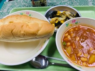 4月14日(木) 公開日 2022/04/14 更新日 2022/04/14 給食の献立 きょうのこんだて ソフトフランスパン、ボークビーンズ、わかめサラダ、牛乳です。 昨日までの天気と打って変わりきょうは肌寒いです。体調をくずしがちですから食事をきちんと摂り、病気に負けない身体作りを心がけましょう。 iPhoneから送信 いいね(0)