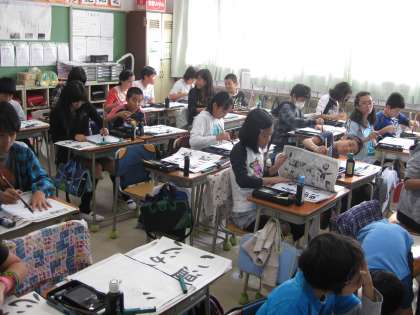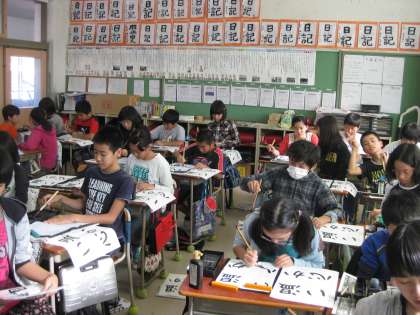 習字で「温かい心」を書きました。