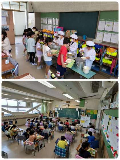 1年生の給食 公開日 2022/06/02 更新日 2022/06/02 五小の生活 自分たちで声をかけ合って、役割を分担しながら準備ができるようになりました。黙食もしっかりできています。 いいね(0)