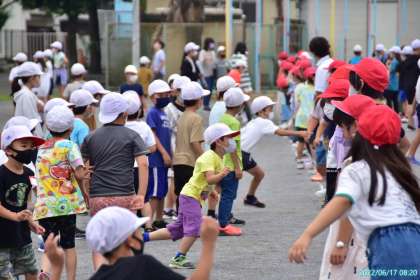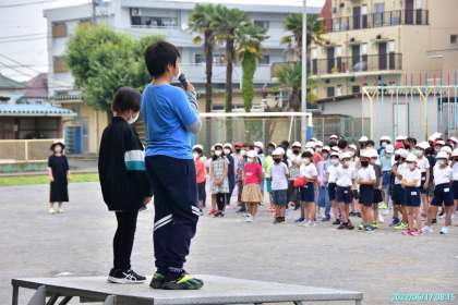今日の朝はゲーム集会で「白線おに」を行いました。集会委員会の子が元気よく司会を行い、大変盛り上がりました。
