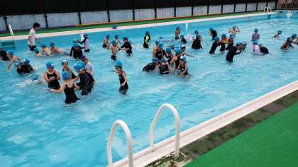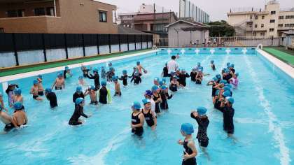 今週から水泳指導が始まります。今日は2年生がプール開きを行いました。