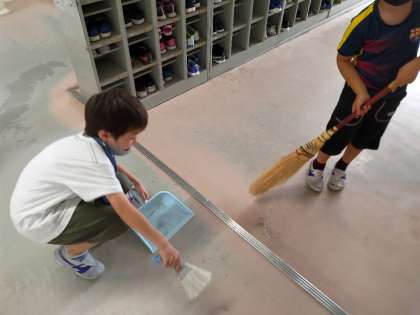 そうじの時間に2年生が「先生見て!こんなにごみがとれたよ」と誇らしげに報告してくれました。溝にごみがたまっているのを見付けて、きれいにしてくれたのです。一人一人がこの意識でそうじに取り組めば、15分という短い時間でもとてもきれいになります。