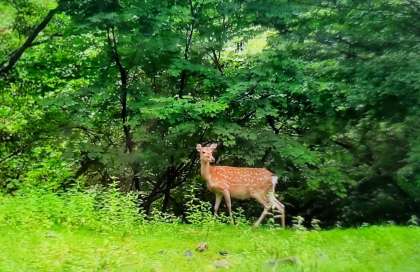 食後はいろは坂を通り、華厳の滝を見に行きました。いろは坂の途中で鹿を見かけました。
