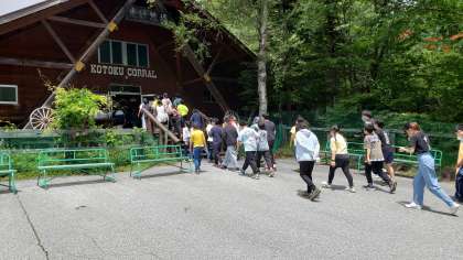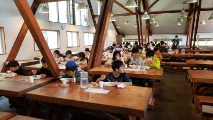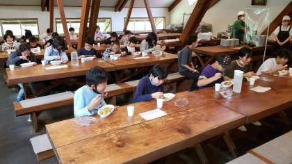 光徳牧場で昼食。カレーライスを2杯食べる五小っ子が続出。