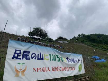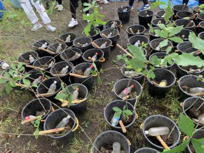 足尾では植林体験をしました。1人1本緑の山になることを願い「コナラ」を植えました。