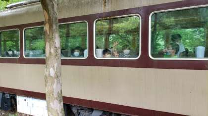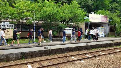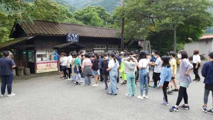 わたらせ渓谷鐵道の「神戸(ごうど)」駅内にある『清流』という列車レストランで移動教室最後の食事をしました。