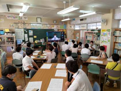 今日の小中一貫教育の日は、各校をオンラインで繋いで、スクールロイヤーによる研修を行いました。子供たちが安心して学校生活を送ることができるように、学校を越えた連携のあり方について学びました。