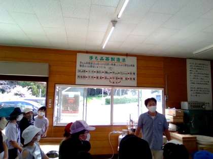 日本平お茶会館で茶摘み、茶揉み、お茶の試飲をクラス別に行いました。興味をもって行っていました。
