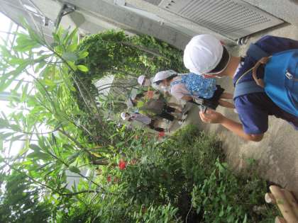 多摩動物公園の昆虫園見学では、蝶々やナナフシ、カマキリなどにふれあいました。