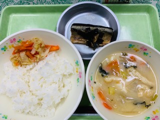 10月5日(水) 公開日 2022/10/05 更新日 2022/10/05 給食の献立 きょうのこんだて ごはん、秋刀魚の筒煮、キャベツの生姜風味、呉汁、果物みかん、牛乳です。 旬の秋刀魚を生姜、酢、しょうゆ、みりん、酒などの調味料で2時間半煮込みました。中骨まで柔らかく煮えまるごと食べられます。 iPhoneから送信 いいね(0)