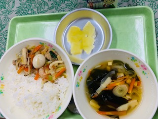 10月14日(金) 公開日 2022/10/17 更新日 2022/10/17 給食の献立 きょうのこんだて ごはん、八宝菜、ワカメスープ、果物りんご缶、牛乳です。 ご飯の上に八宝菜をのせて、中華丼にしました。 iPhoneから送信 いいね(0)