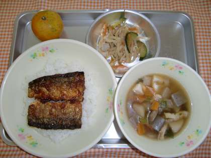 さんまのかばやきどん、けんちんじる、にびたし、ぎゅうにゅう