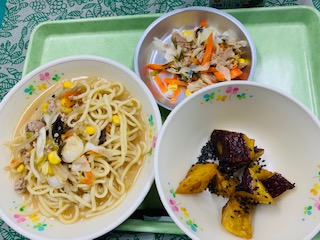 11月2日(水) 公開日 2022/11/04 更新日 2022/11/04 給食の献立 きょうのこんだて 味噌ラーメン、大学芋、ツナサラダ、牛乳です。 味噌ラーメンは大人気、大学芋と共に良く食べました。 iPhoneから送信 いいね(0)