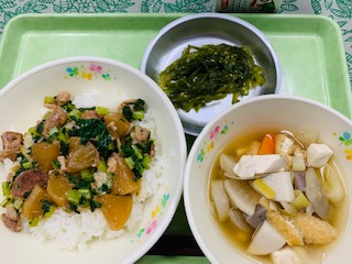 11月10日(木) 公開日 2022/11/10 更新日 2022/11/10 給食の献立 きょうのこんだて はち大根と豚の角煮丼、けんちん汁、茎わかめの生姜炒め、牛乳です。 八王子の大根をたっぷり使って豚の角煮丼を作りました。 iPhoneから送信 いいね(0)