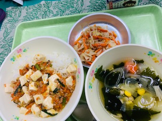 11月21日(月) 公開日 2022/11/22 更新日 2022/11/22 給食の献立 きょうのこんだて ご飯、麻婆豆腐、わかめとえのきのスープ、胡麻和え、牛乳です。 ご飯に麻婆豆腐をかけて丼にしていただきます。 iPhoneから送信 いいね(0)