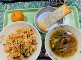 12月14日(水) 公開日 2022/12/14 更新日 2022/12/14 給食の献立 きょうのこんだて キムチチャーハン、棒餃子、もやしのスープ、果物みかん、牛乳です。 寒くなってきました。チャーハンにキムチなど辛味のものを使って体の中から温めます。 iPhoneから送信 いいね(0)