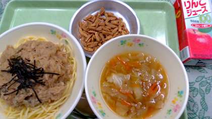 11月28日(火) 公開日 2023/11/28 更新日 2023/11/28 給食の献立 きょうの献立 八王子産大根おろしスパゲティ、ジュリエンヌスープ、 アーモンド黒糖、りんごジュースです。 八王子で収穫された大根を55キロとツナ20キロを使い 和風スパゲティを作りました。旬の大根の甘味を感じる 一品です。 アーモンド黒糖は黒砂糖の半量の水をあわせて煮た黒蜜に 炒った細切りアーモンドを焦がさぬように煮絡めました。 ご家庭でもお試しください。 いいね(0)