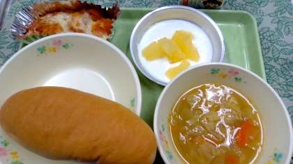 12月1日(金) 公開日 2023/12/01 更新日 2023/12/01 給食の献立 きょうの献立 国産小麦粉のパン、ポテトのミート焼き、ABCスープ フルーツ(りんご)ヨーグルト、牛乳です。 きょうは、国産の小麦粉を使ってパンを焼いてもらいました。 食物自給率では17パーセントの小麦粉です。日本に何かあった時には 国民の食事が危ぶまれます。農業を見直し自給率が上がるよう 願っています。 いいね(0)