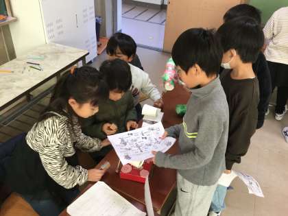 12月7日(木)の生活の授業で秋祭りを行いました。木の実や枯葉を使って楽しいおもちゃを作って遊びました。自分たちが楽しむだけでなく、お客さんを楽しませることもできました。