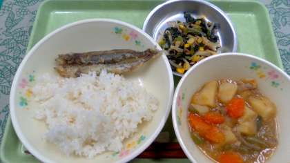 12月20日(水) 公開日 2023/12/20 更新日 2023/12/20 給食の献立 きょうの献立 ごはん、ししゃもの磯辺揚げ、じゃがいものそぼろ煮 小松菜とコーンの炒め物、牛乳です。 旬の小松菜を使いコーンやベーコンと炒めました。 カルシウムやビタミンをたっぷりとって丈夫な体に 育ってほしいと願っています。 いいね(0)