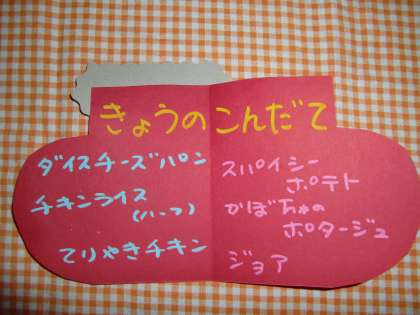 素敵な献立も給食室から届きました♪