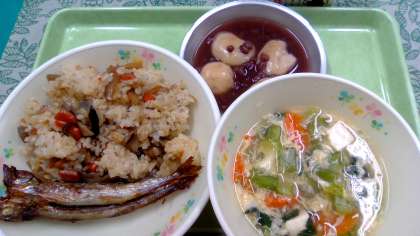 1月11日(木) 公開日 2024/01/11 更新日 2024/01/11 給食の献立 きょうの献立 かてめし、焼きししゃも、かきたま汁、白玉あずき、牛乳です。 きょうは鏡開きです。給食でも白玉団子を作り、お汁粉より少し 濃い目に煮た小豆と合わせて白玉小豆を作りました。 いいね(0)