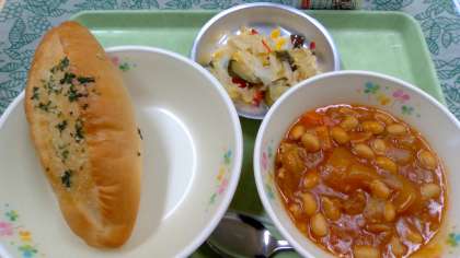 1月16日(火) 公開日 2024/01/16 更新日 2024/01/16 給食の献立 きょうの献立 ガーリックトースト、チキンビーンズ、カラフルサラダ 牛乳です。 ソフトフランスパンにすりおろしたニンニクとパセリとバターを 混ぜて塗りオーブンで焼きました。ガーリックの香りが食欲を 増進させます。 いいね(0)