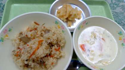 1月22日(月) 公開日 2024/01/22 更新日 2024/01/22 給食の献立 きょうの献立 鶏ごぼうピラフ、じゃがバター、八王子産白菜のクリームスープ 牛乳です。 八王子産の白菜をクリームスープにしました。体の温まる一品です。 食だよりでも紹介しています。 いいね(0)