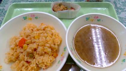 1月29日(月) 公開日 2024/01/29 更新日 2024/01/29 給食の献立 きょうの献立 大豆ピラフ、チキンの香草パン粉焼き、オニオンスープ、牛乳です。 全国学校給食週間4日目のきょうのキーワードは う です。 うまみたっぷりの う です。 オニオンスープは、玉ねぎがあめ色になるまでじっくり炒め うまみを出しました。きょう使った玉ねぎは35キログラムです。 いいね(0)