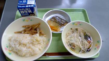 2月8日(木) 公開日 2024/02/09 更新日 2024/02/09 給食の献立 きょうの献立 きびごはん、鰆のゆずみそがけ、甘辛ごぼう てのべそうめんのばち汁、牛乳です。 きょうは和み献立として岡山県の郷土料理を作りました。 手延べそうめん作りの盛んな岡山ではそうめんの切れ端を お吸い物に入れていただきます。そうめんの形が三味線の バチに似ているところからばち汁となりました。 いいね(0)