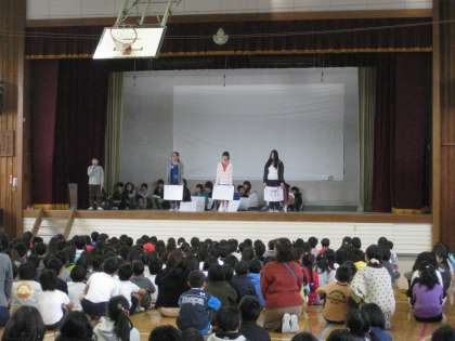1月19日(木) 委員会発表集会 公開日 2012/01/19 更新日 2012/01/19 五小の生活 今日の集会は、委員会発表集会でした。 保健委員会のみなさんが、今日まで準備をしてきました。 三択クイズで楽しく発表を聞くことができました。 風邪対策は、大丈夫かな!? 風邪がはやる季節です。 学校でも指導していますが、 子どもたちの健康管理、よろしくお願いします。 いいね(0)
