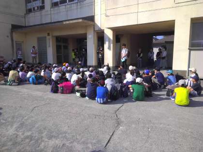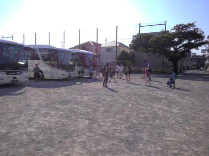 いよいよ静岡移動教室の開始です。開校式のあと、10分遅れで出発です。
