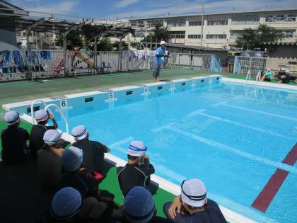 6月24日(月)1・2校時に子供たちが待ちに待っていた水泳の学習が始まりました。