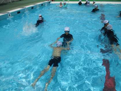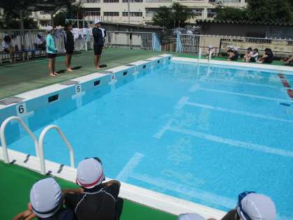この日はプールでのルールを確認しながら、水慣れを中心とした活動を行いました。子供たちは楽しそうに活動していました。今後はそれぞれの泳ぎ方を練習していく予定です。頑張りましょう!