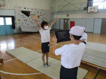 5年生 マット運動 公開日 2024/06/28 更新日 2024/06/28 五小の生活 マット運動は、技のポイントが明確であるため、子供同士が課題解決に向けて学び合う活動を充実させました。 子供たちは、中学年までに、基本的な回転技や倒立技に取り組んできました。5年生では、それらの技を安定して行ったり、発展技に取り組んだりするとともに、できるようになった技の組み合わせを考え、連続技として演技を行うなど、運動の楽しさを広げていきました。 いいね(0)