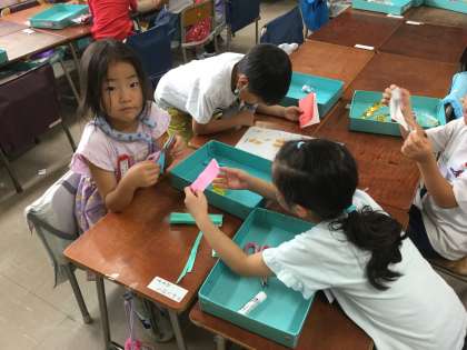 7月1日(月)の5時間目に1,2年生のなかよし組で七夕飾りを作りました。2年生に教えてもらいながら1年生も素敵な飾り作ることができました。7月5日(金)の七夕集会がとても楽しみです。