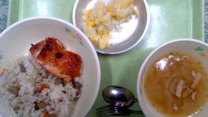 7月12日(金)の給食 公開日 2024/07/12 更新日 2024/07/12 給食の献立 今日の献立 根菜ピラフ 八王子産ハニーマスタードチキン コーンポテト 下中玉ねぎのスープ 牛乳 いいね(0)