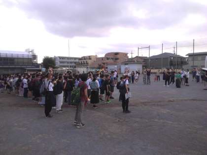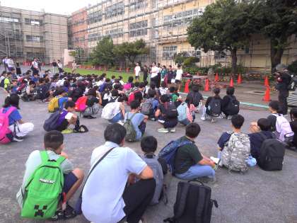 いよいよ移動教室が始まりました。 出発式のあと、5分遅れで出発しました。