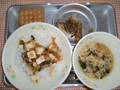 2月17日(金)の献立 公開日 2012/03/02 更新日 2012/02/22 給食の献立 <今日の給食> チゲどうふどん、ちゅうかスープ、くきわかめのとうざに、かんぱん、ぎゅうにゅう いいね(0)
