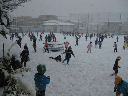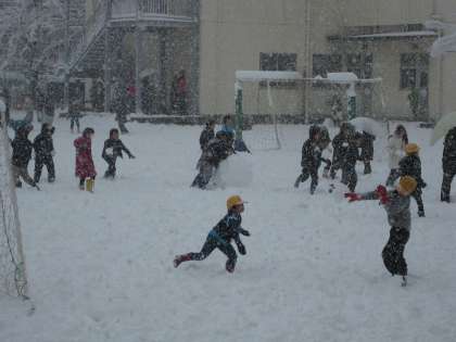 休み時間に雪で遊べるのはとっても久しぶりですね。