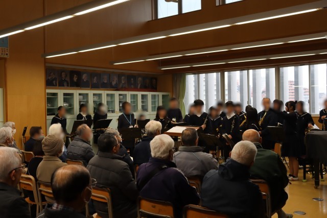 吹奏楽部が地域のシルバーの会の方々に向けて演奏会を行いました。