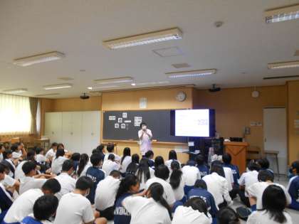1枚目の写真は、助産師さんによる講話の様子です。妊娠や出産に関する知識を学ぶことができました。