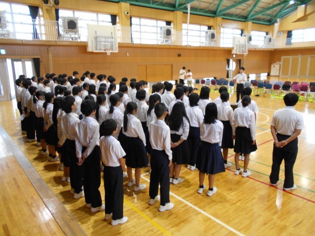 体育館では、2年生が学年合唱の練習を行いました。大人数になると迫力が違います。