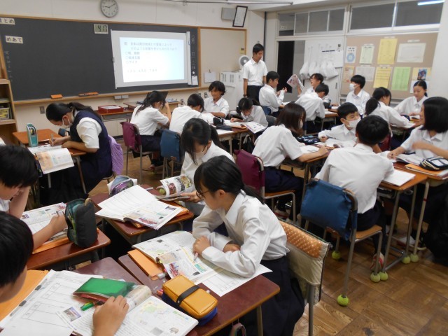 1時間目。1年4組の社会の授業は、歴史的分野「日本と東アジアとのかかわり」について。