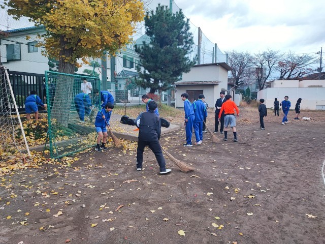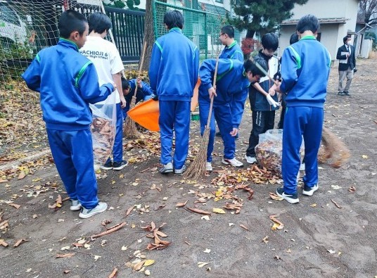 今日は、美化委員会の呼びかけで、2年生が落ち葉掃きを行いました。